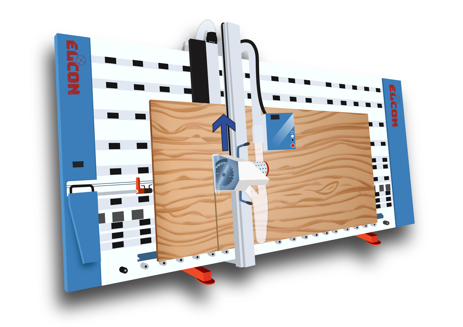 Le deuxième passage, en coupe complète (en coupe verticale : du haut vers le bas du panneau / en coupe horizontale : de la gauche vers la droite), réalise la découpe finale du panneau. Ce dispositif a l’avantage de fonctionner sans changement de lame, ce qui permets d'éviter le réglage de l'alignement entre la lame et l'inciseur. Le dispositif de SCORING est beaucoup plus simple mécaniquement qu’un inciseur classique.